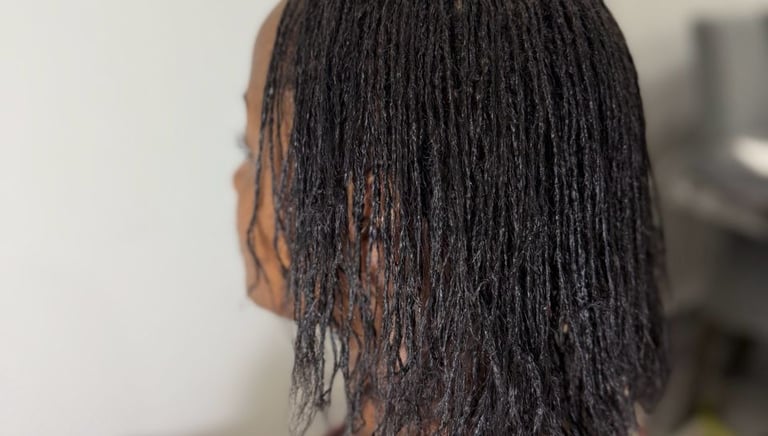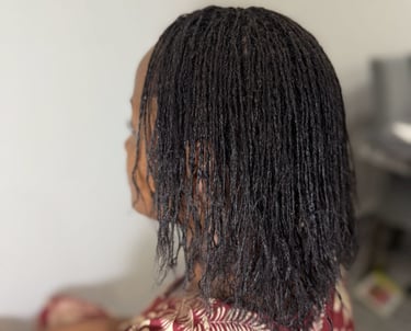 Today, I’m committed to providing professional, personalized, and heart-centered services where every client feels seen, respected, and valued. From consultation to maintenance, I guide each person with intention, care, and excellence — ensuring healthy, lasting locs that honor who they truly are.